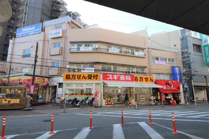 1階にドラッグストア、コンビニ、たこ焼き屋